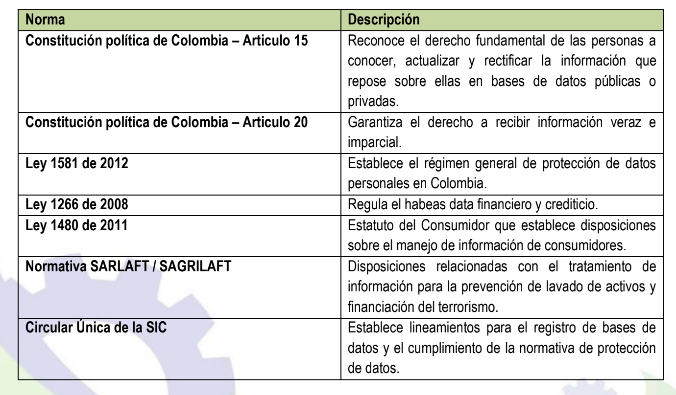 Colombia, especialmente por lo dispuesto en la Ley 1581 de 2012 y sus decretos reglamentarios.