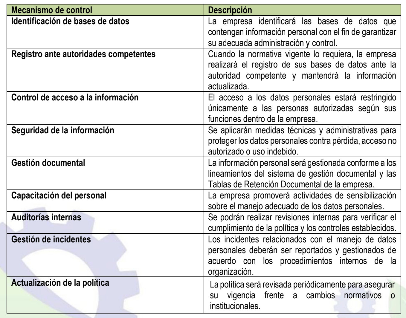 Los siguientes mecanismos permitirán realizar el seguimiento, control y mejora continua del tratamiento de datos